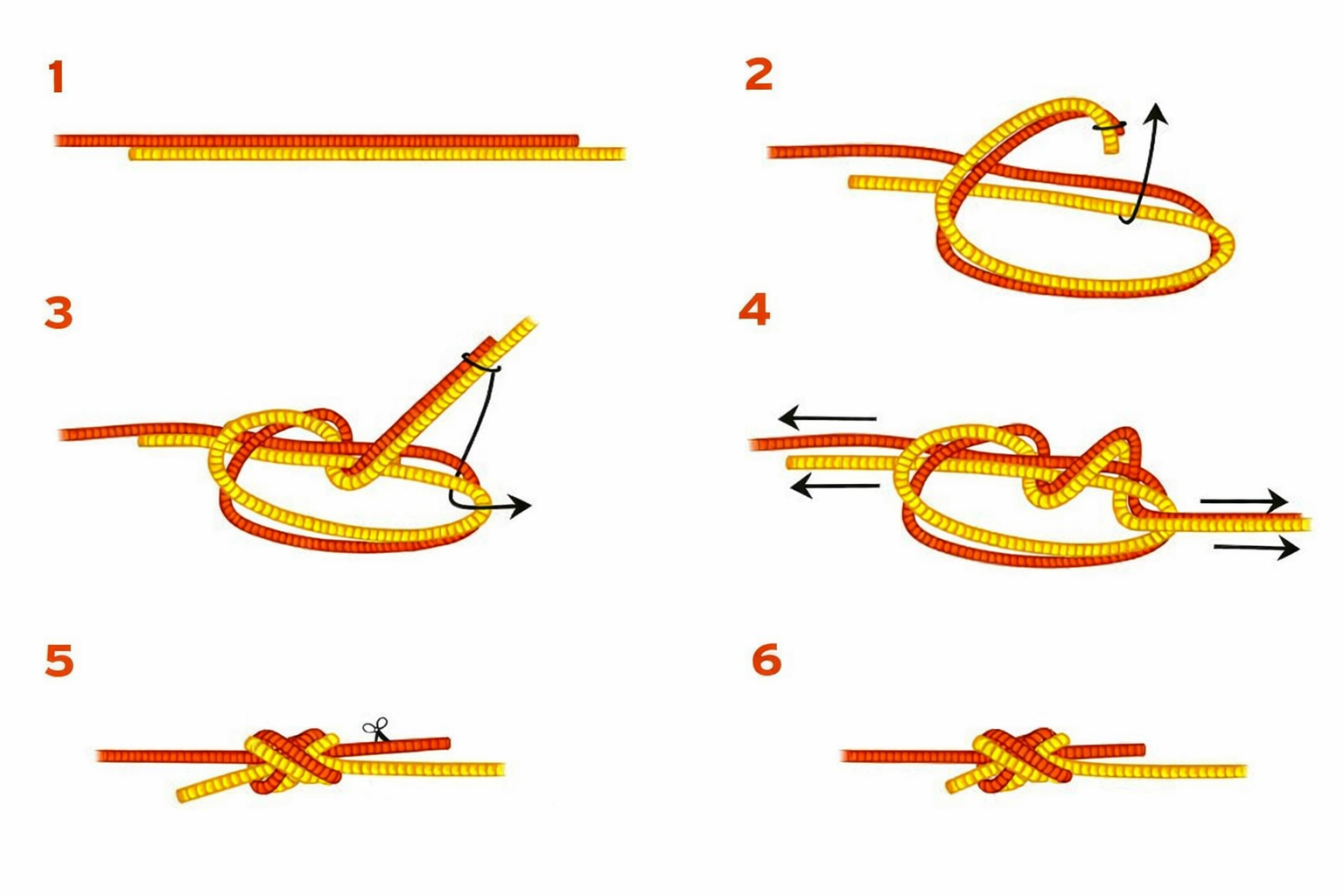 The surgeon's knot is the easiest knot for connecting two lines and works beautifully even when diameters differ significantly. The double version (two passes through the loop) is standard and provides excellent strength.
